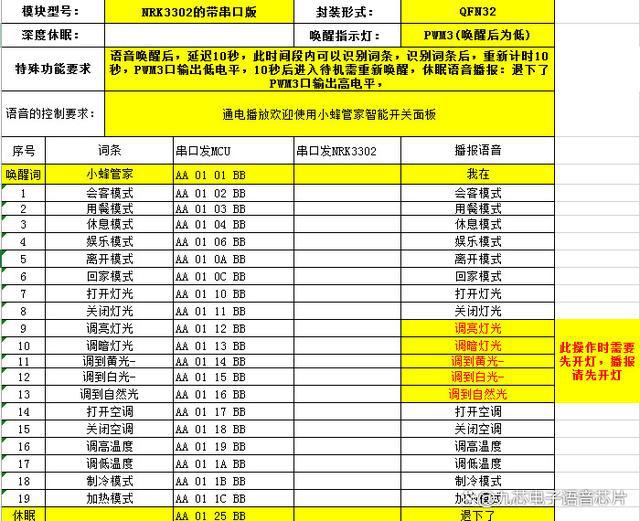针对以上的应用场景,NRK330X语音识别芯片能够实现多种语音控制指令,如调节灯光、温度、播放音乐等,从而提升客房的智能化水平,为住客提供更加便捷和舒适的服务体验。